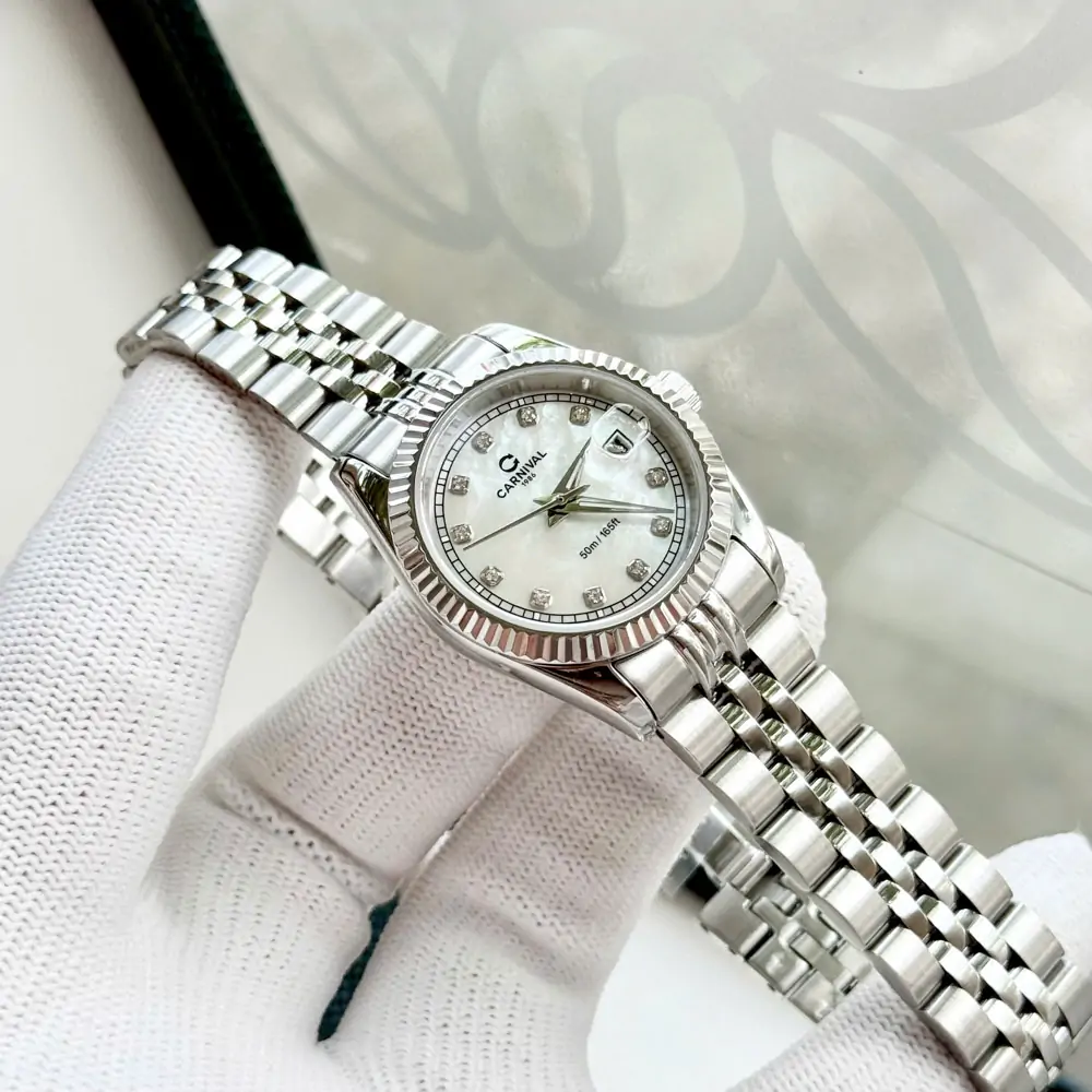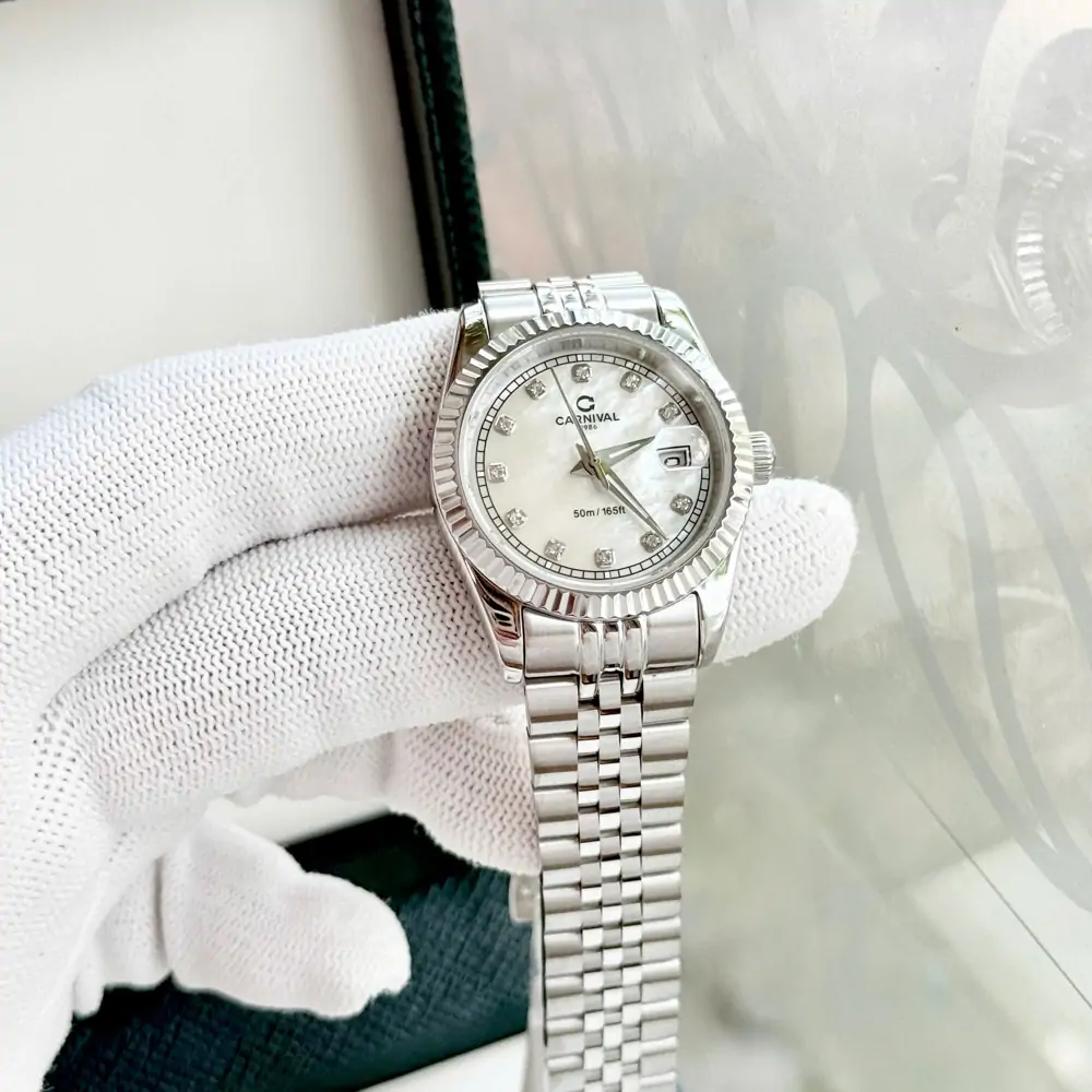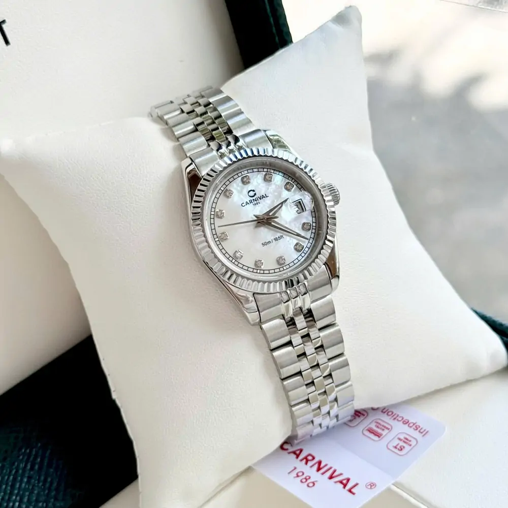 Carnival 8131L-VT-TK là chiếc đồng hồ nữ mang đậm hơi thở châu Âu cổ điển, kết hợp tinh tế với sự hiện đại và thanh lịch. Ngay từ ánh nhìn đầu tiên, mẫu đồng hồ này gây ấn tượng bởi mặt số tròn nhẹ nhàng, đường kính khoảng 31mm – kích thước lý tưởng cho cổ tay phụ nữ Việt, vừa thanh thoát, vừa dễ phối đồ.