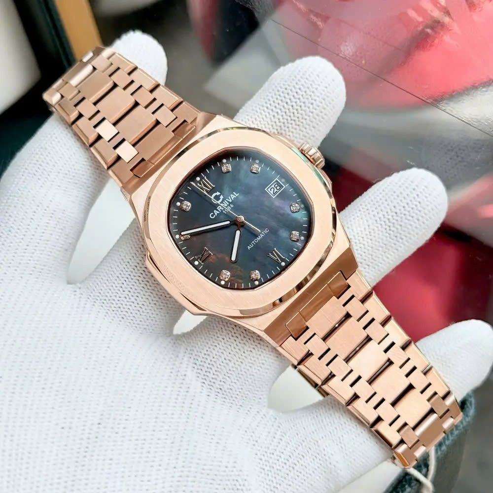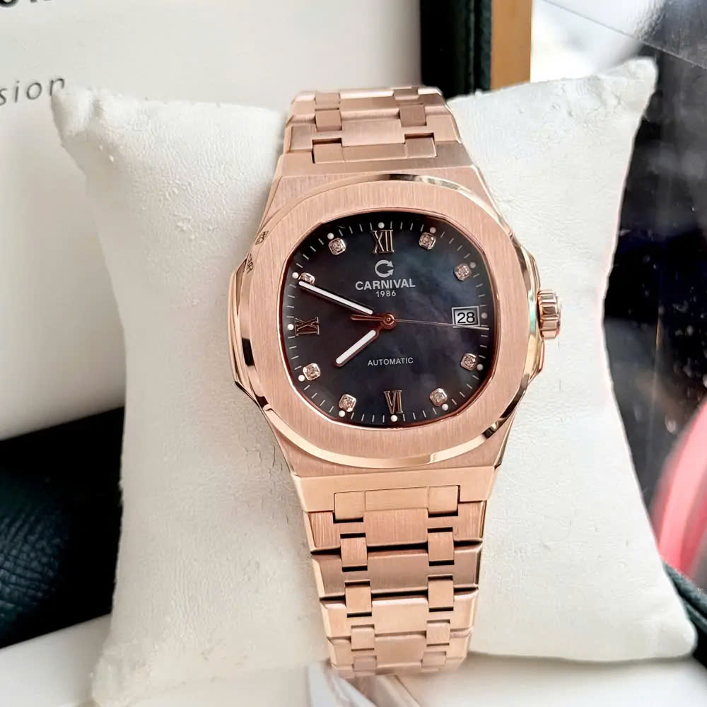 Một trong những lý do khiến CARNIVAL 8160G-VH-DK được săn đón chính là bộ máy cơ tự động (Automatic) có độ ổn định cao. Đồng hồ không cần pin, hoạt động hoàn toàn dựa trên chuyển động tự nhiên của cổ tay người đeo – vừa tiện lợi, vừa nâng tầm đẳng cấp.