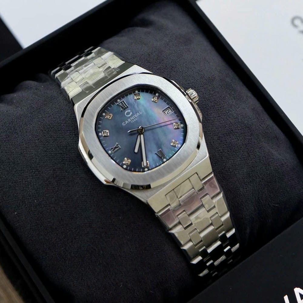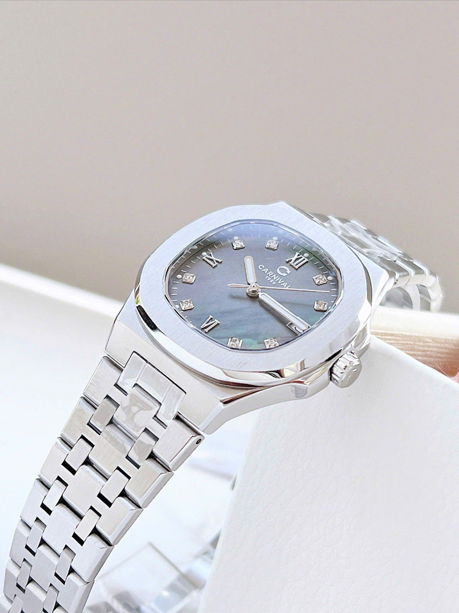 Carnival 8160L-VT-DK là mẫu đồng hồ nữ gây ấn tượng ngay từ cái nhìn đầu tiên nhờ thiết kế mang đậm hơi thở hiện đại kết hợp nét duyên dáng cổ điển. Chiếc đồng hồ sở hữu mặt tròn cổ điển với đường kính 34mm – một kích thước lý tưởng cho cổ tay phái nữ, vừa đủ nổi bật nhưng vẫn thanh thoát đúng chuẩn thanh lịch.